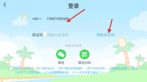2、在登录界面输入手机号码,点击获取验证码按钮;