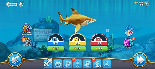3、轻松的海洋世界,让玩家们可以体验震撼的鲨鱼生活。