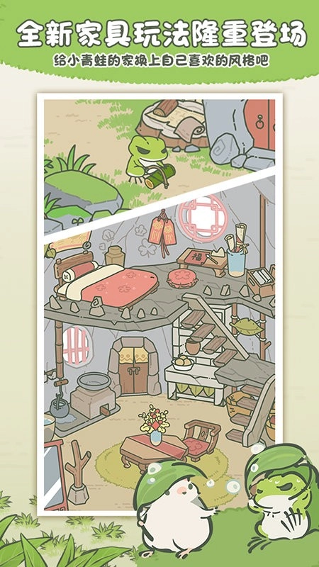 游戏延续了简约清新的美术风格,小青蛙和它的朋友们造型呆萌可爱;新增的日记系统会记录日常点滴,能让玩家了解小青蛙的交友情况;中国版特别融入了兵马俑、大熊猫等元素,让每次探索都充满新发现;同时完全保留了放置玩法的精髓,每天只需花几分钟就能享受游戏乐趣。