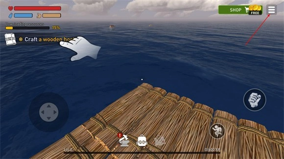 6、收集足够的资源来扩建你的木筏,制造不同的工具来保护自己的安全。