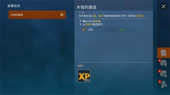 7、完成左边的任务可以推进剧情的发展,不断完成任务来开启你的漂流生存之旅。