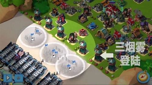 三烟雾登陆:火箭在本后,其实对部队的登陆并没有影响;这里用烟雾的原因,是等烟雾消失后,部队已经瞄准,可以快速地拆掉岸前的狙击塔。
