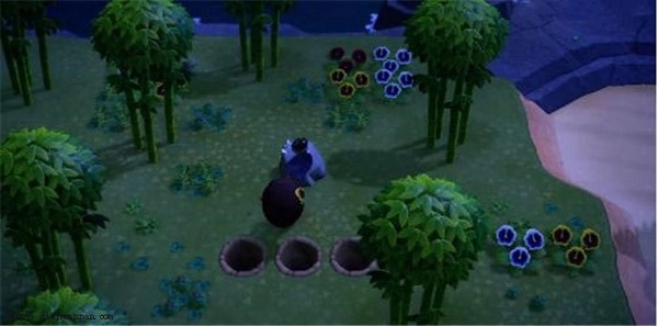 3、杂草捡取完之后,我们要在敲击石头所占的位置后边挖3个大坑,因为我们敲击石头会有后坐力,这样避免过长时间无法获得矿石。