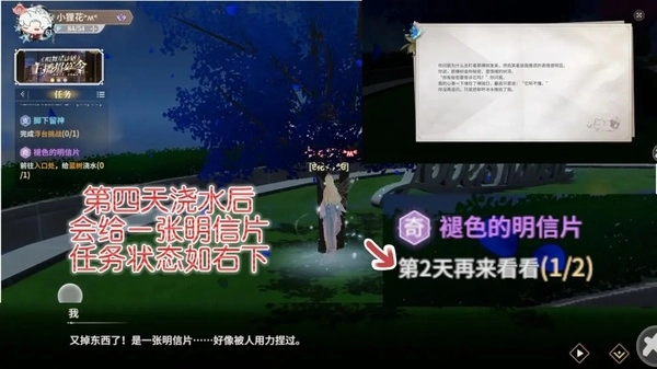 第四天浇水后会给一张明信片任务状态如右下