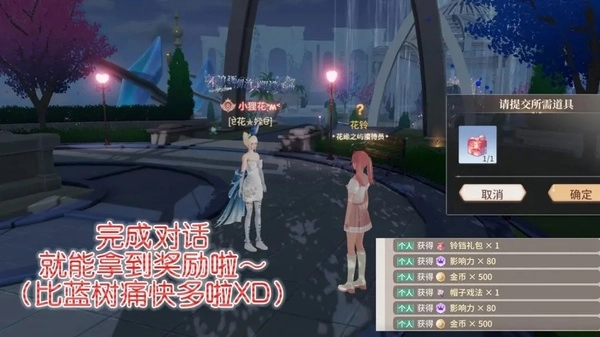 完成对话就能拿到奖励啦(比蓝树痛快多啦)