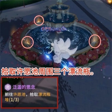 拾取许愿池周围三个漂流瓶。