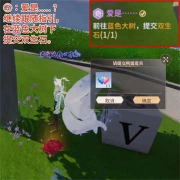 继续跟随指引,在蓝色大树下提交双生石。
