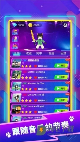 2、完成各种任务以解锁新关卡,与可爱的节奏猫一起突破难关。