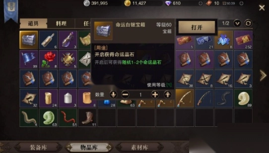 5、开启命运黄金宝箱和命运白银宝箱可获得数量不等的兑换道具命运晶石