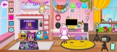 界面中包含了许多卡通角色和游戏场景,玩家可以自由与这些角色进行互动,例如和它们玩游戏、与它们对话等等。
