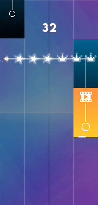 2、精准点击钢琴键可获1分,部分钢琴键较长,按住能持续得分。因此,遇到长钢琴键,别只点一下,应尽可能多得分。