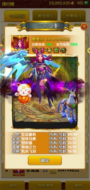 除了部分固定的分数加成,像等级加成、人物属性加成(赵云女巫加10X,其他最高5X)、13个神像11X加成以及成就称号加成之外,还存在一些浮动加成,这些同样是得分的关键所在。