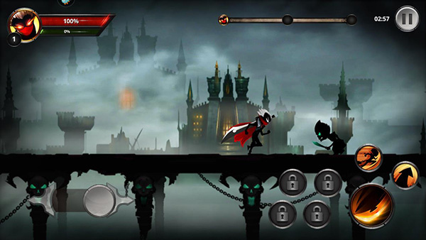 2、游戏运用经典的动作格斗操作方式,通过左手边的按钮来实现移动,只需向左或向右拉动即可。