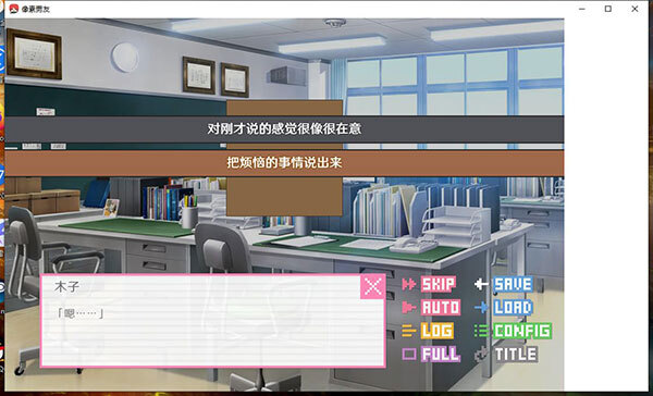 像素男友汉化版,这是一款以校园生活为背景展开的休闲文字恋爱剧情游戏。乍一看,它像是那种经典的恋爱养成类游戏,然而其独特之处在于,有着别具一格的古怪像素画风。在这款游戏里,只有男角色呈现为像素人模样,不禁让人好奇,这究竟是出于什么原因呢?游戏画面主要呈现卡通日式风格,玩家将扮演女主角,顺着剧情的推进,从给出的选项中挑选自己心仪的答案。通过简单的攻略步骤,逐步揭开男角色隐藏在背后的真实面目。整体而言,这款游戏的可玩性相当高,那些像素风的男角色始终在玩家面前维持着一种神秘的氛围。