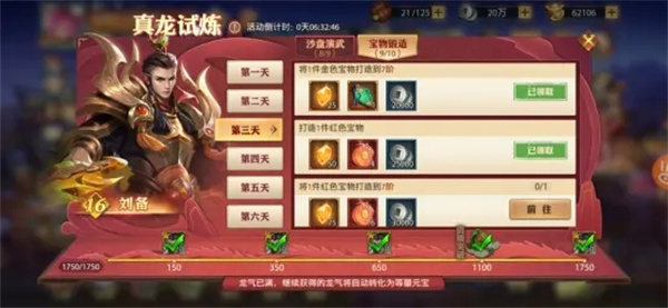 如上图,宝物锻造任务后三项相对来说较难。第一个金色宝物打造到7阶有个小技巧可以省些元宝,那就是刷开局,开赛季礼包。