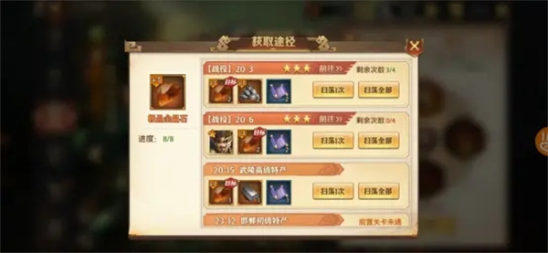 扫荡进阶材料时,玩家面临两种选择:一是在战役处扫荡,二是在普通关卡处扫荡。这两种方式都能确保获得目标进阶材料。然而,在普通关卡扫荡,非目标进阶材料可能无法获取,而战役处扫荡则必定能得到两种进阶材料。所以,建议玩家优先选择在战役处扫荡进阶材料,若非只差两三个材料即可进阶,尽量不扫荡普通关卡。毕竟在这款游戏中,大家每天都会耗费大量体力进行扫荡,若能把握好这一细节,相同体力下,就能比他人多获取不少进阶材料。