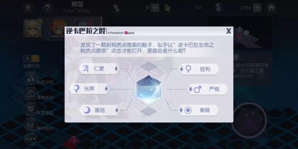 这是一款极为简单的解密游戏。根据游戏说明,只需依照逆卡巴拉质点的顺序,就能开启这个骰子。具体而言,就是从“王冠”起始,以“王国”收尾的质点排序,依次点击质点的名字即可。成功打开骰子后,能获取一些神秘奖励。但需留意,每次呈现的质点名称各不相同,所以一定要牢记整个卡巴拉的顺序哦~