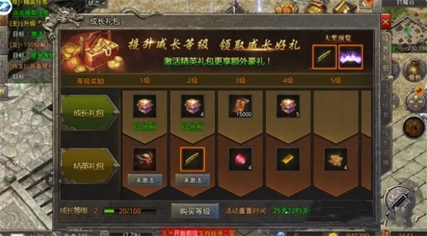 4、土豪玩家还能直接在商城购买材料。这样既能节省刷怪时间,又对冲击排行榜更有帮助。游戏里设有成长礼包,与其他游戏的通行证系统类似。玩家每天只需轻松完成一些日常任务,就能顺利升级。仅需花费28元,就能将成长礼包升级为精英礼包,解锁全部奖励。