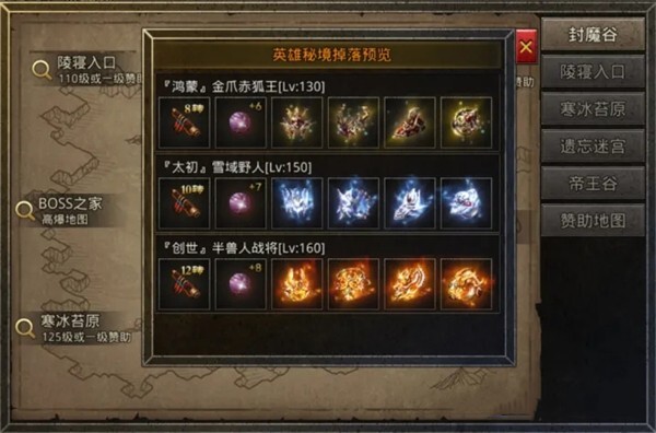 角色等级达到110级后,便能前往封魔谷第二主城野外的高阶BOSS地图。进入封魔谷后,点击右上角的小地图,会出现地图导航。通过地图导航,能了解到每个地图的进入要求,点击具体地图,还能查看每个地图中对应BOSS所爆出的装备。