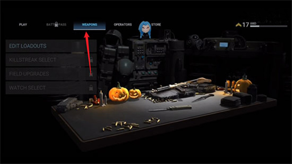 4、然后点击,如图所示位置,即可进入武器库。