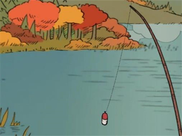 5、然后点击界面右上角的湖泊,在湖上我们可以看到一个钓鱼的鱼钩和浮标,点击它就可以开始钓鱼了。