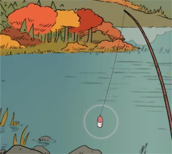 6、在浮标周围出现光圈的时候,就表示有东西上钩了,这个时候点击浮标就可以把东西钓起来,可能是鱼,也可能是破靴子。