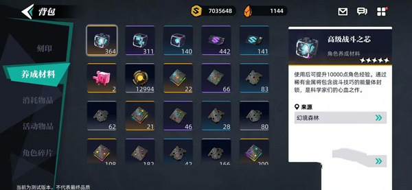 3、每提升二十级就需要进行一次进阶才行,根据角色属性和等级的不同,所需要的道具也是有着一些差别。平均每一场战斗可以掉落2-4个材料,大家即便是在不需要材料的时候,也最好把每天免费的次数给刷了。