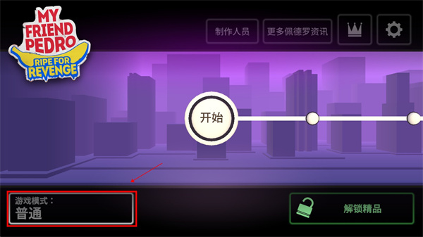 1、下载进入我的朋友佩德罗手机版,首先我们选择游戏模式,点击开始进入游戏;