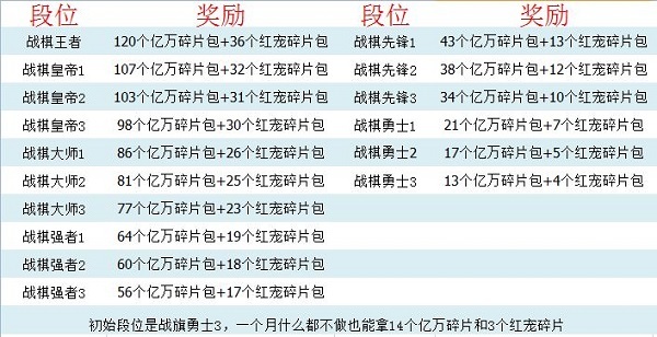 段位奖励:
