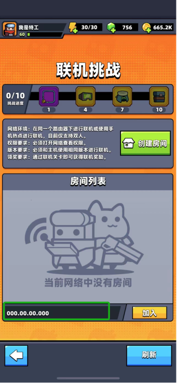 联机挑战作为总部基地全新开发的训练项目,目前仍存在诸多有待完善之处。在此,诚挚希望各位特工积极建言献策,助力总部将该训练项目的体验优化至最佳状态!让每一位特工都能与默契搭档携手,尽情享受一同玩耍带来的无尽乐趣!