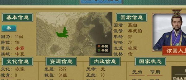 心性:不同的心性能给国家带来不同的加成效果,列国国君如果是负面性格(贪嗔痴慢疑)则更具有攻击性。