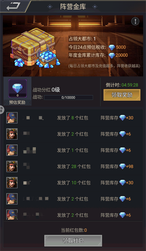 阵营玩家每次充值都会有红包,在阵营金库界面可以发放给所有阵营成员。