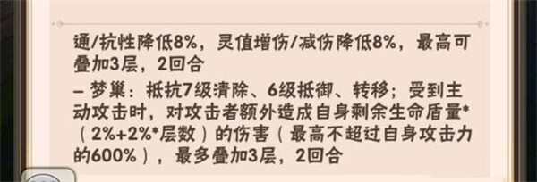 梦巢技能就是主要输出手段了,是根据生命盾来的,总体来说还算可观,因为护佑技能可以临时提升生命盾,所以不用担心没有生命盾的情况,技能配合较好
