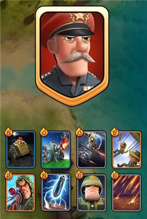 一个完整的卡组由八个军团卡和一个将军卡组成,玩家可以提前搭配三个卡组,方便随时出战。
