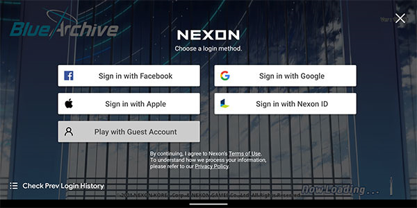 2、加载完成后点击界面,会弹出选择账号登录的选项。若设备有google服务框架,且您拥有google账号,建议直接选择使用google账号进行游玩。