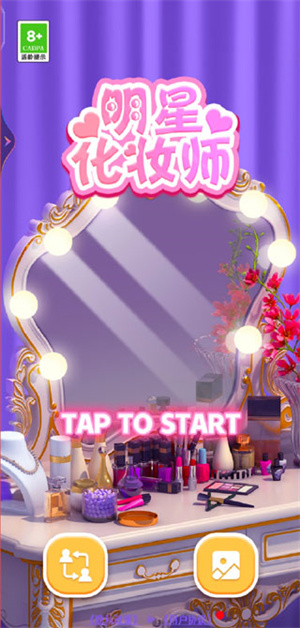 1. 第一步,打开明星化妆师游戏的最新版本。界面左边的方块,用于挑选即将进行化妆改造的人物;右边的方块是相册,完成化妆后所拍摄的照片将会在此处展示。接着,点击“TAP TO START”即可开启游戏。