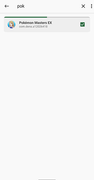 4、用关键字“pok”搜索并勾选Pokemon Masters EX即可
