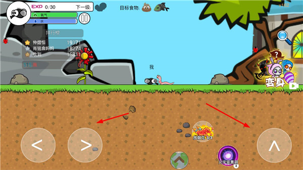 1、吞噬进化,从小小的苍蝇开始寻找符合你的食物吞噬之后完成进化。