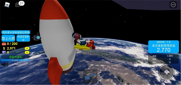 2、登上火箭:直接快速坐到火箭上,也可以在火箭上升到空中时一键跟随到相应的空中位置。还有一个比较舒服的地方就是如果你在某个岛屿上不幸掉落到地面,可以点击快速返回火箭上再次进行挑战,比较方便。