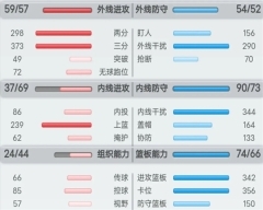 这个情况也是错开分卫外防高内防低的特点,一般这种数据都会很好看的,也有人经常会把中锋放到分卫位置打,即使失误7 8个,但能够拿个70 80分都可以!