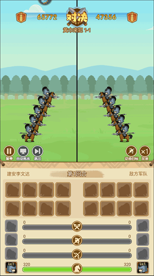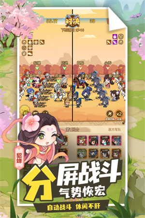 游戏创新性地采用双屏战斗模式,引领玩家深度沉浸于战斗场景之中。同时,别具一格地运用了少见的武将与军队分离养成玩法。战斗之时,在分屏的两端各自排兵布阵,弩兵、骑兵、步兵、弓兵等诸多兵种依次列阵,尽显战场的磅礴气势,带来强烈的视觉冲击。玩家可凭借策略,巧妙搭配不同兵种,从而发挥出独特的战斗效果。