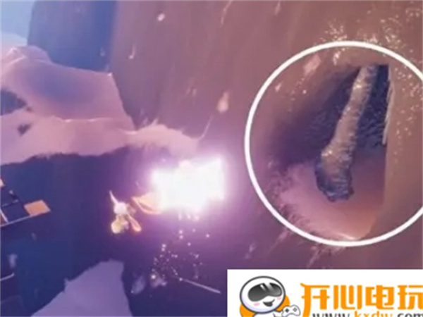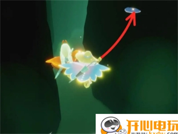 进入方式有两种,一是从神殿旁的云洞进入后,两人合力打开石门;二是直接从外边飞上去。进入之后,还是需要两人一起点亮石柱,届时会有天窗打开,在左边有电梯,乘坐电梯上去。接着继续向前走,走到有蝴蝶的地方,大喊“哗啦啦”飞上天,随后从下图右边的洞进入。走到中间会看到一个很“明显”的分叉口,选择往右边走,就能找到光之翼了。如下图所示。