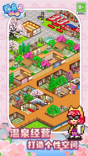 《温泉物语2》最新版本,是开罗游戏公司推出的一款以像素风格呈现的模拟经营温泉旅馆手游,延续了开罗游戏的经典格调。游戏剧情十分丰富,玩家会在冬日撩起门帘,踏入温馨治愈的温泉天地。在此,玩家能够建造自己心仪的设施,像“乒乓球台”“小卖部”“铁桶温泉”等各式各样的设施,打造独属于自己的温泉之乡,吸引客人,让自己的温泉旅馆成为客流如织的知名场所。