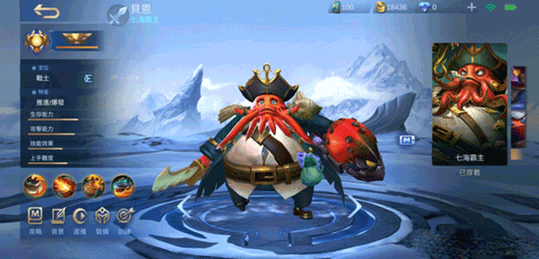 该给大家推荐一下助我上分的主力英雄章鱼哥 - 贝恩啦!要知道,在大家前期金币不够,买不起强势英雄的时候,它就登场了!这英雄操作不难,强度也还说得过去,而且比较冷门,没人跟你抢。不管是走上路、中路、下路,还是打野位置,它都能胜任。至于辅助位,别问,问就是它就一个控制技能,打辅助太划水了。