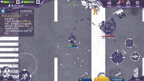 游戏采用俯视视角,地图无迷雾,一切地形与怪物尽收眼底,是迎难而上,还是避其锋芒都由您来决定;双轮盘操作,可一边移动一边射击,武器蓄力时,亦能利用走位躲掉怪物和感染者的攻击。
