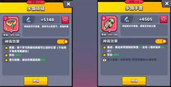 那么就是看这些神铸装备哪个的提升最大,那么肯定是两星永恒项链和二星永恒手套。