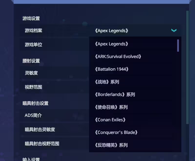 3、最后选择你要设置的游戏,然后在下面找到对应的灵敏度进行设置即可。