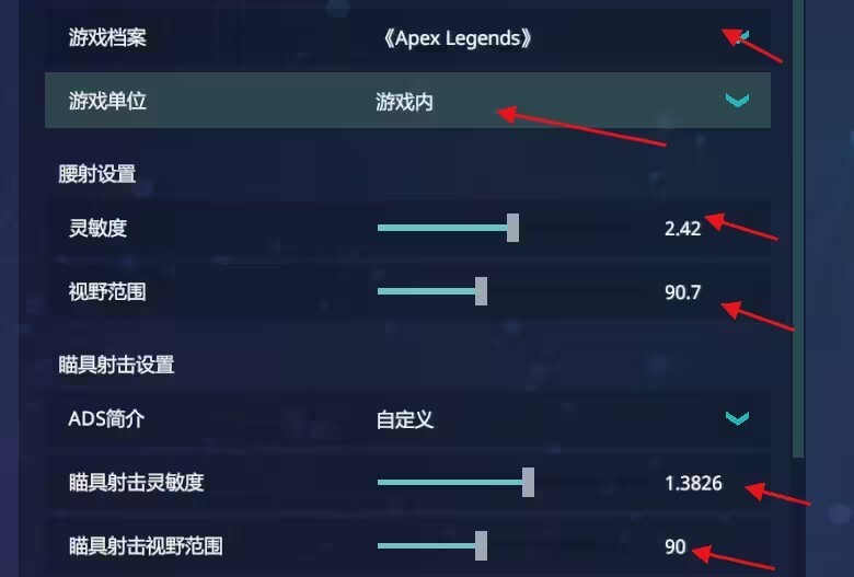 然后按照游戏内的具体设置去对应设置就行了,不需要自己去换算。
