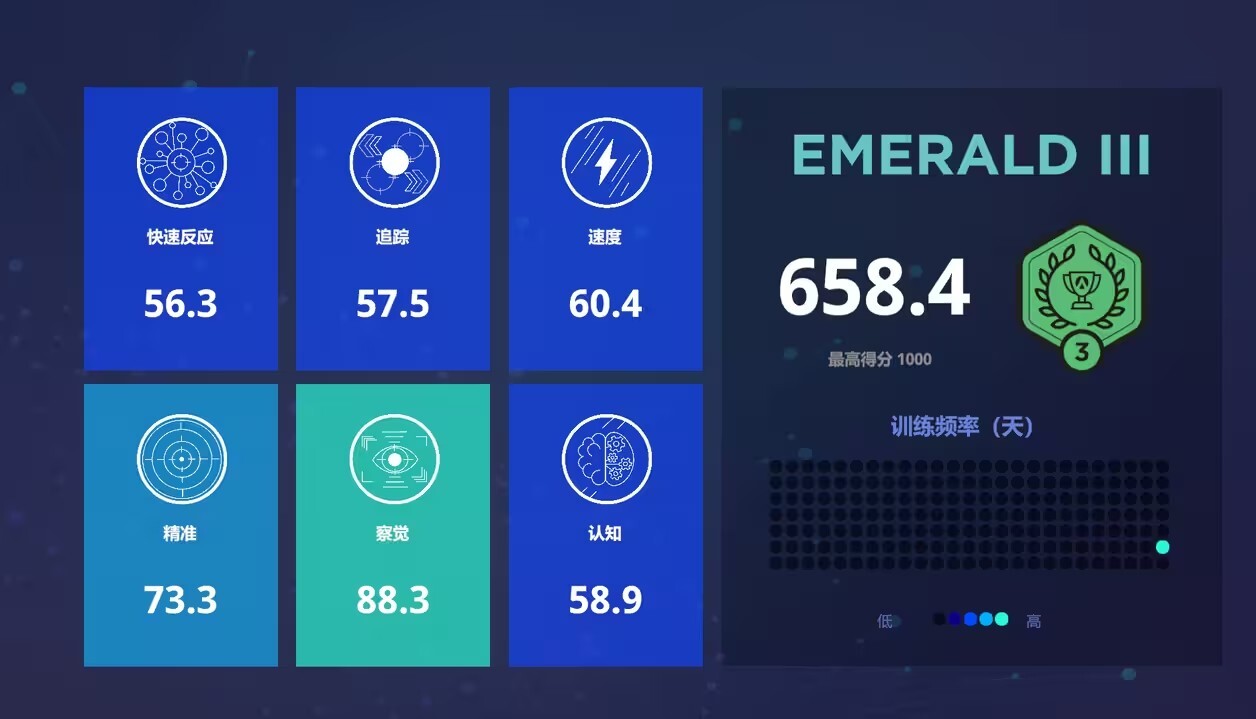 分别是对玩家进行了快速反应,跟枪,速度,精确度,洞察力,认知力这六方面进行能力估测。总的来说,应该还是挺准确的。