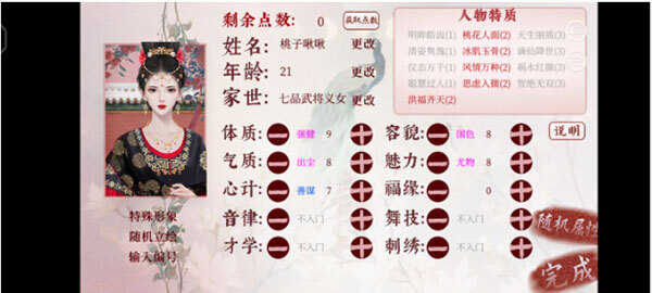 此加点易留寝,后期生娃满属性,开局后非常容易获得的心计、福源和才艺等不必浪费点数
